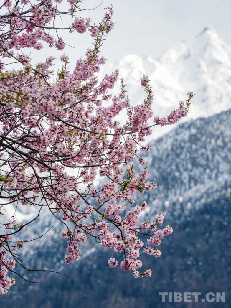 古老的野桃花在高原春日肆意綻放,與遠處的雪山同框,詮釋著生命在極高之處的絢爛與堅韌