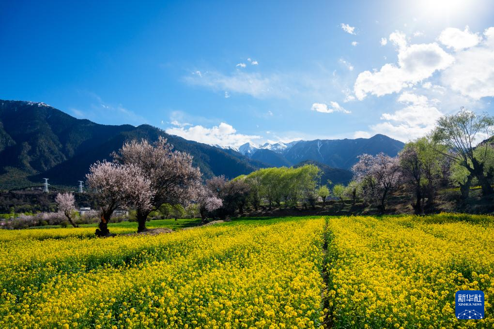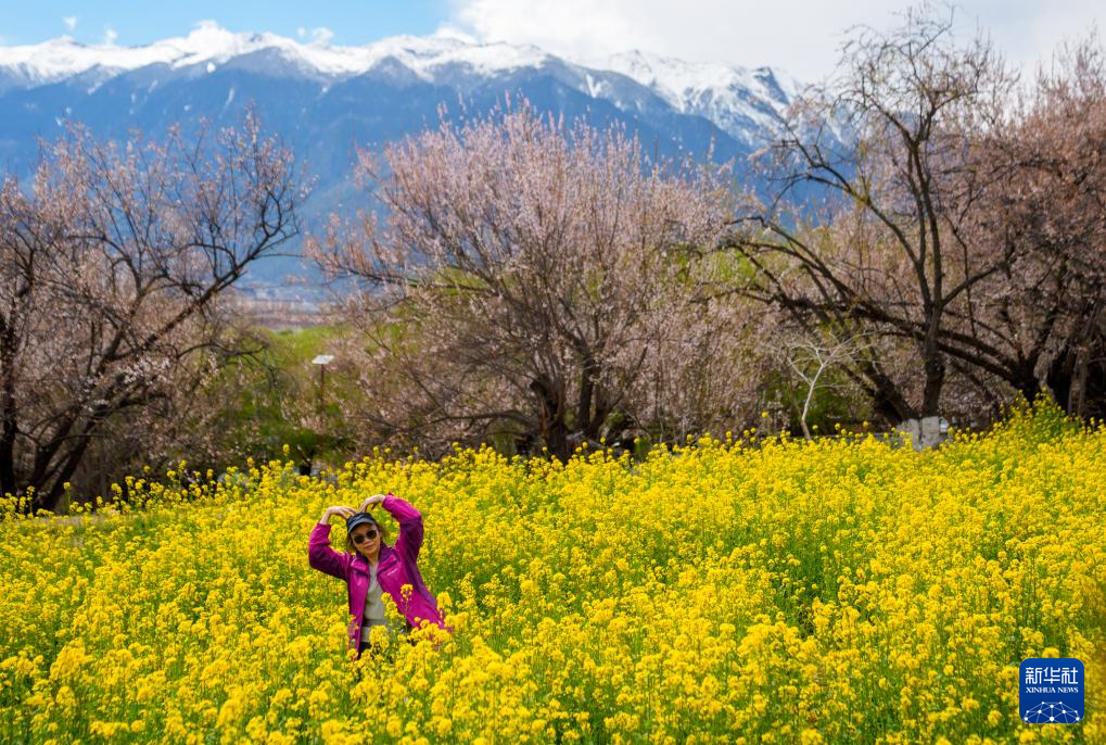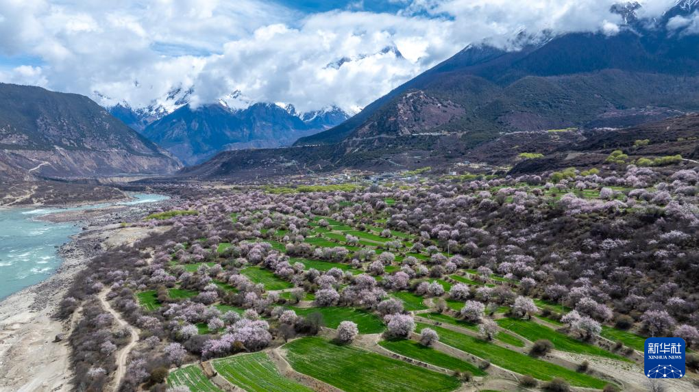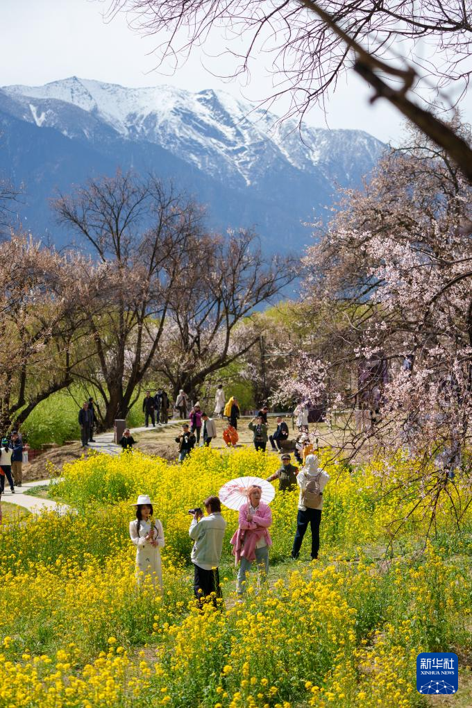 入春以來,素有“雪域江南”之稱的西藏林芝氣溫回暖,沿尼洋河與雅魯藏布江一線連綿上百里的野生桃花競相盛開,與高聳壯美的雪山相互映襯,吸引游客前來欣賞。