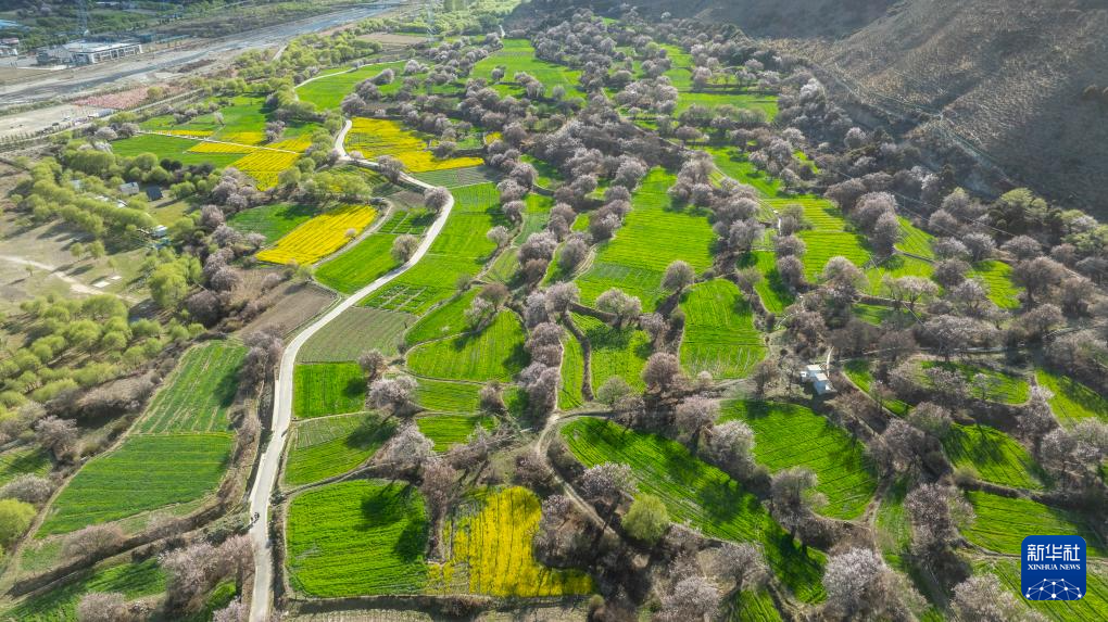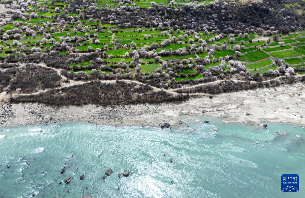 這是林芝市巴宜區(qū)朵當(dāng)村桃花景色(4月2日攝,無人機(jī)照片)。新華社記者 丁增尼達(dá) 攝