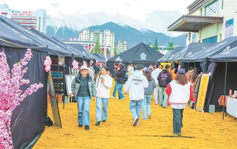 頗具人氣的“尋夢(mèng)桃花嘉年華”煙火市集。本報(bào)記者 劉楓 攝