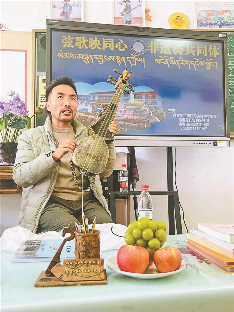 校本課程傳承文脈?!氨緦W(xué)期我們開設(shè)了54門校本課程。”曹小梅告訴記者,“比如漆畫課,孩子們把藏族紋飾和漢族繪畫技法融合在一起;扎念琴彈唱課上,老師引導(dǎo)學(xué)生把身邊的故事編成歌詞來唱。孩子們?cè)趧?dòng)手實(shí)踐中,自然就體會(huì)到中華文化的博大精深,也增強(qiáng)了對(duì)自己民族文化的認(rèn)同感和自豪感?!蹦壳埃瑢W(xué)校已有3名學(xué)生成為西藏自治區(qū)藏戲傳承人。