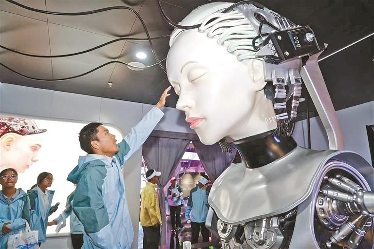 拉薩北京實(shí)驗(yàn)中學(xué)研學(xué)團(tuán)學(xué)生參觀藝云數(shù)字藝術(shù)中心。