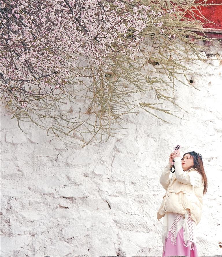 市民在用手機拍攝拉薩春日美好風光。本報記者 索朗旺久 攝