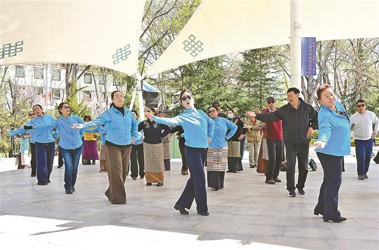 宗角祿康公園內,春日風光靈動又愜意。湖面碧波蕩漾,嫩綠垂柳輕拂水面,一艘艘游船悠然穿行于碧波之上,船上游客歡聲笑語不斷。岸邊廣場上,歡快的音樂此起彼伏,不少市民伴著節(jié)拍跳起健身操,舞步輕盈、神采飛揚,悠然閑適的靜態(tài)美景與熱情洋溢的動態(tài)活力相互交融,盡顯高原春日別樣風情。