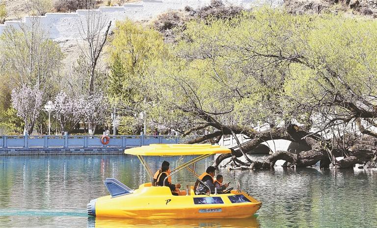 市民在宗角祿康公園劃船。本報記者 旦增蘭澤 攝