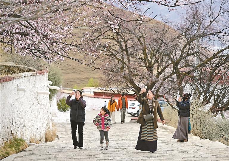 市民在帕邦喀拍攝桃花美景。本報記者 唐斌 攝