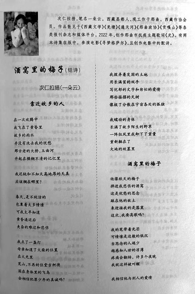 次仁拉措,一位為詩歌而生的藏族青年女詩人,她的文學(xué)創(chuàng)作始終扎根于雪域高原的深處,她以靈性、純粹和赤誠的筆觸探尋著文學(xué)的本質(zhì)、文化的根脈與生命的意義。