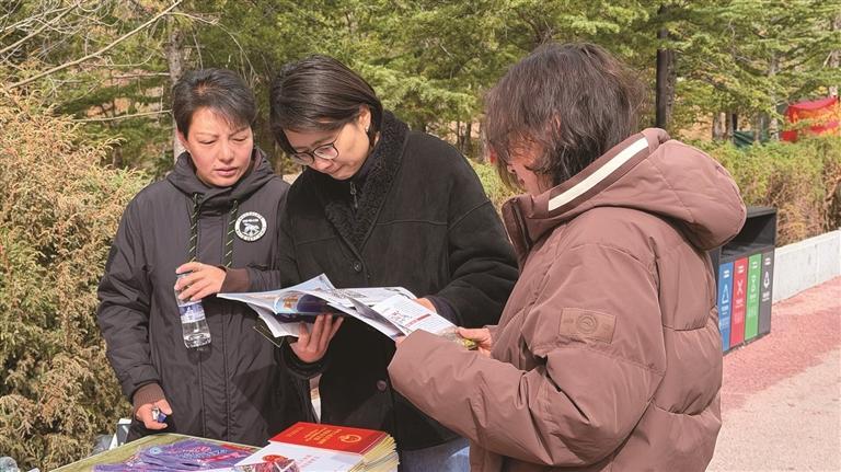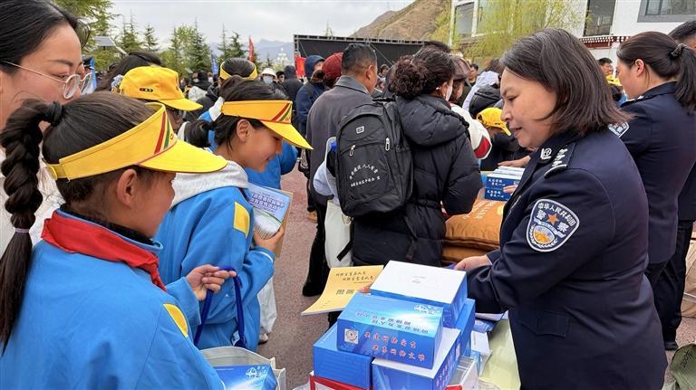 沿著公園步道,拉薩市人民防線辦公室 、公安局、司法局、生態(tài)環(huán)境局等多個(gè)部門(mén),依次設(shè)立了宣傳展位。工作人員穿梭在人群中,耐心地向過(guò)往群眾發(fā)放宣傳手冊(cè),細(xì)致講解網(wǎng)絡(luò)安全、防火防災(zāi)、生態(tài)保護(hù)、防范詐騙等貼近日常的安全知識(shí),路過(guò)的市民紛紛駐足聆聽(tīng)、主動(dòng)咨詢,時(shí)不時(shí)拿起宣傳資料翻閱。