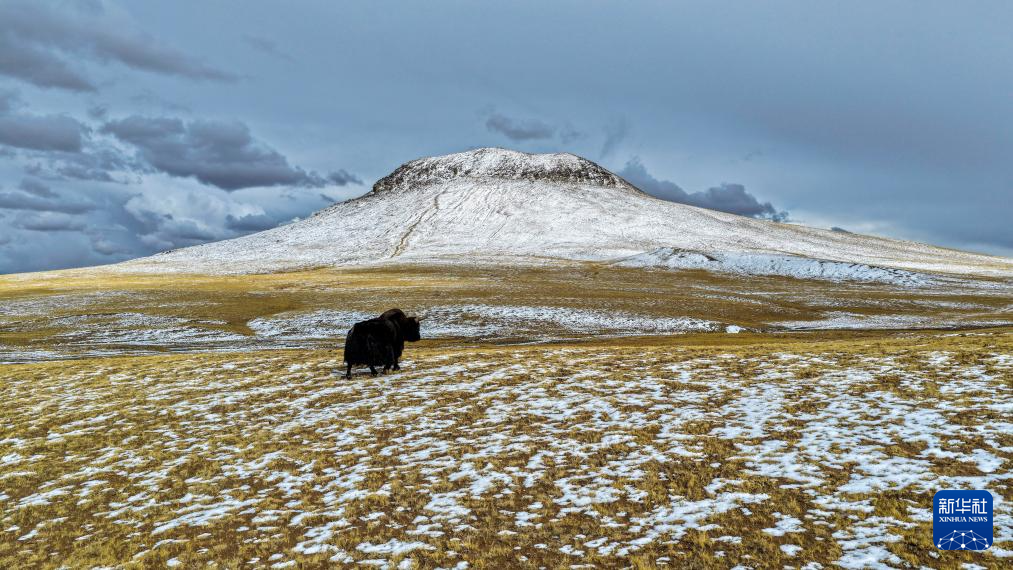 4月10日在“巴毛窮宗”地區(qū)拍攝的野牦牛(無人機照片)。新華社發(fā)(梁春寧攝)