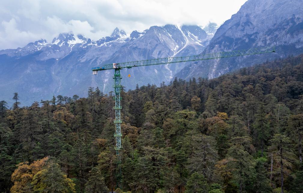 2024年5月24日拍攝的云南麗江森林生物多樣性國家野外科學(xué)觀測(cè)研究站云杉坪大樣地森林林冠塔吊(無人機(jī)照片)。新華社記者 陳欣波 攝