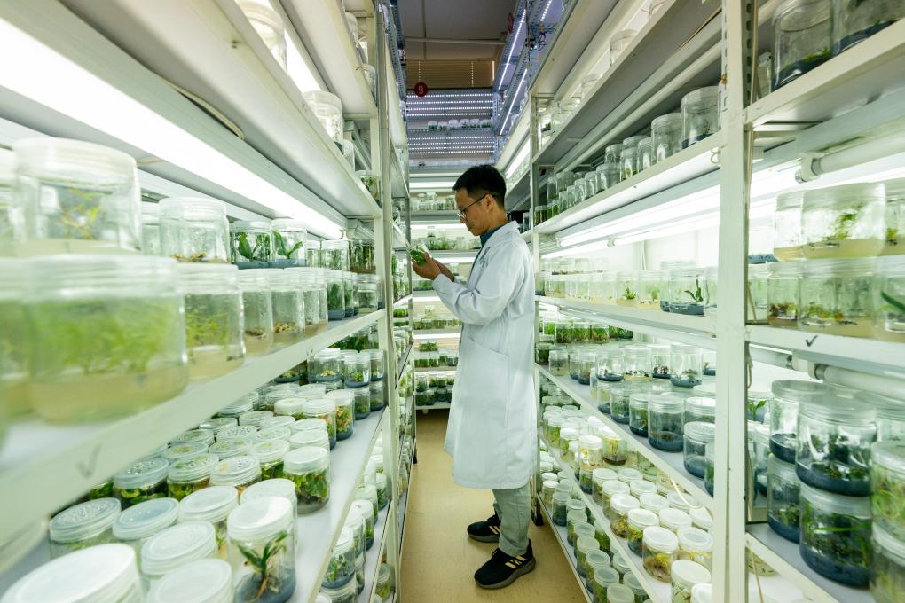 中國西南野生生物種質(zhì)資源庫工作人員在查看植物離體種質(zhì)材料(2023年9月27日攝)。新華社記者 陳欣波 攝