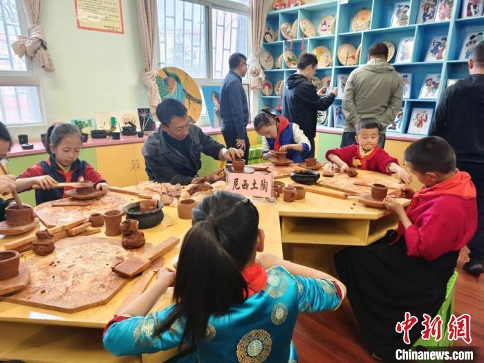 圖為學(xué)生學(xué)習(xí)尼西黑陶制作。中新網(wǎng)記者 韓帥南 攝