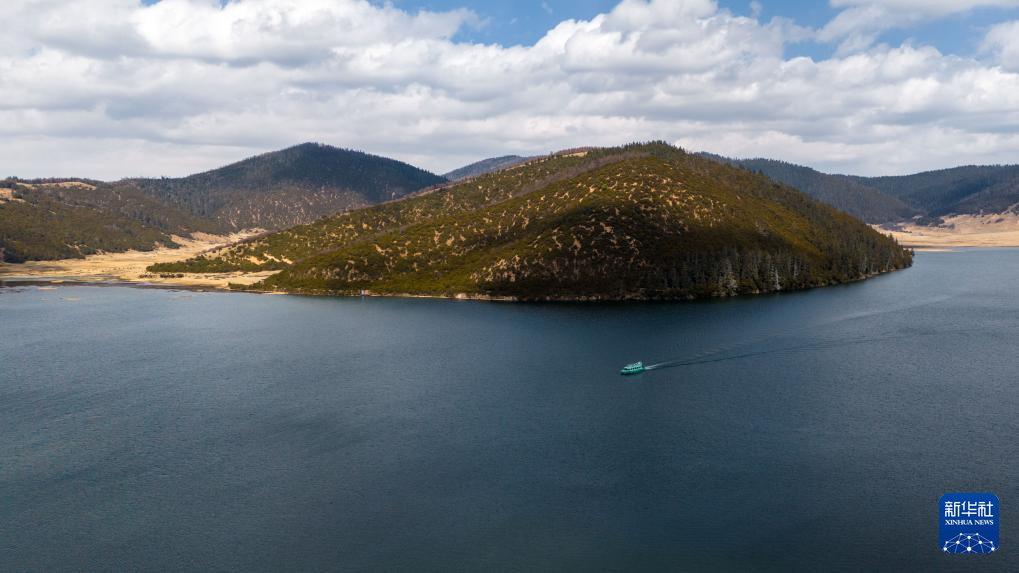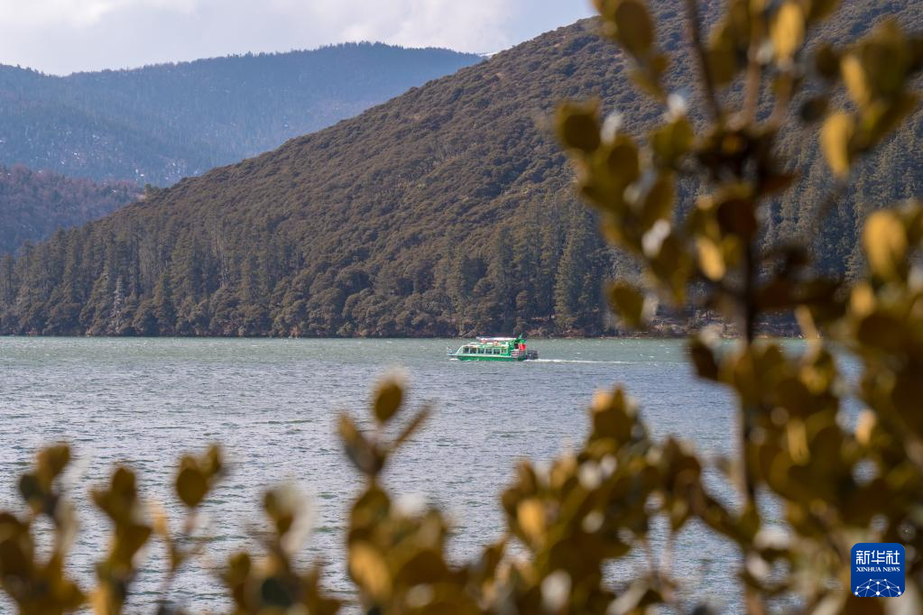 2月23日,游客在普達措景區(qū)乘坐游船觀光。新華社 彭奕凱 攝