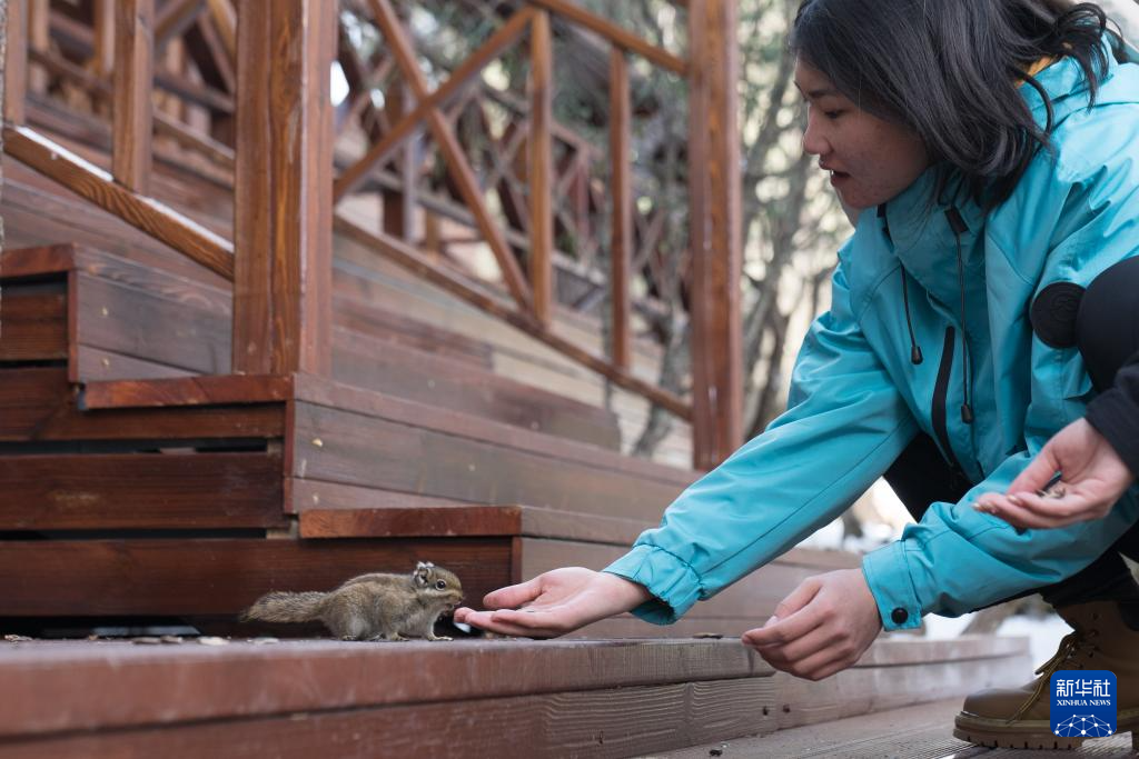 2月23日,游客在普達措景區(qū)投喂松鼠。新華社 彭奕凱 攝