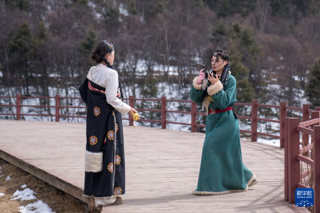 2月23日,游客在普達措景區(qū)拍照。新華社 彭奕凱 攝