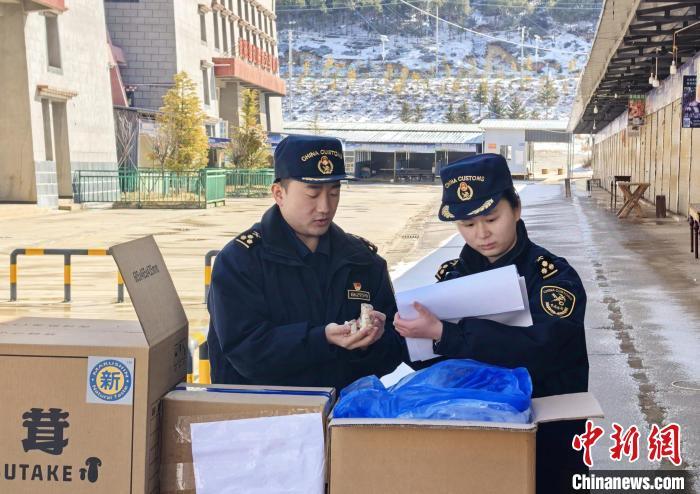 海關(guān)關(guān)員在香格里拉市食用菌出口企業(yè)開展現(xiàn)場(chǎng)監(jiān)管。楊梟 攝
