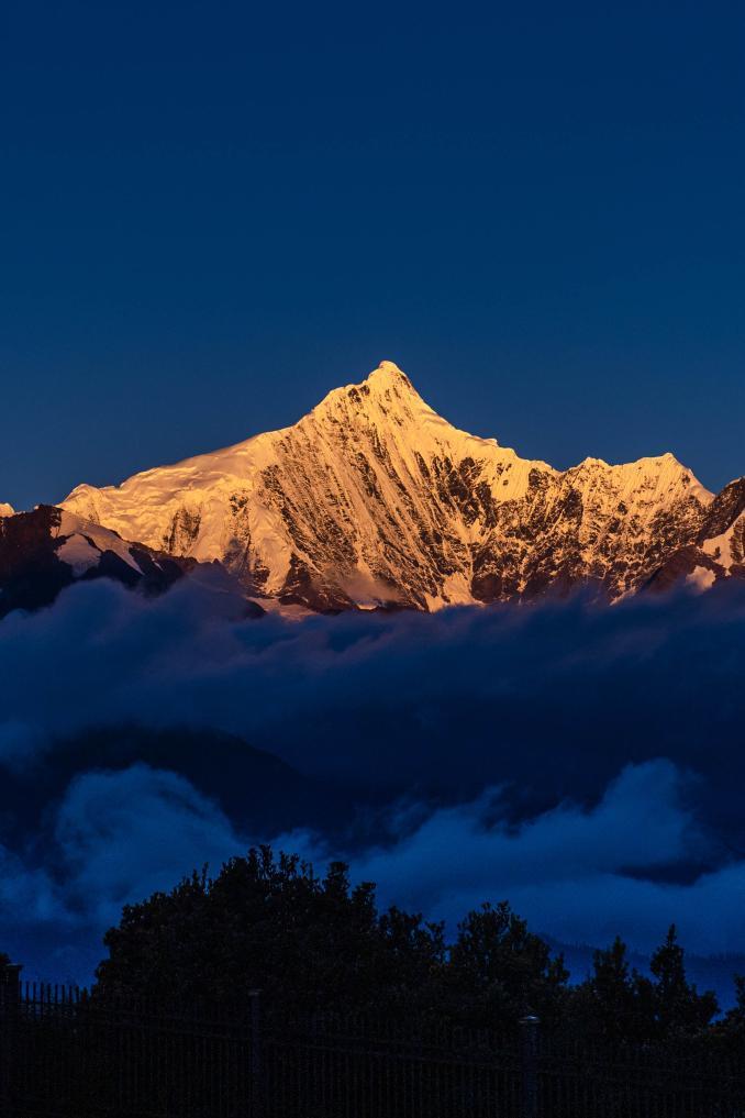 這是2021年9月15日拍攝的梅里雪山“日照金山”美景。新華社記者 胡超 攝