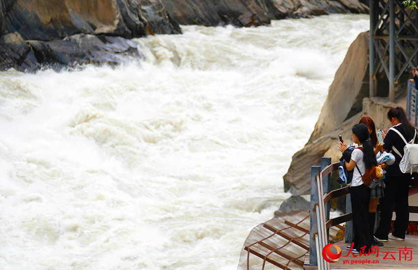虎跳峽氣勢(shì)磅礴的峽谷景觀吸引各地的游客前來(lái)觀光打卡。人民網(wǎng)記者 莊志斌 攝