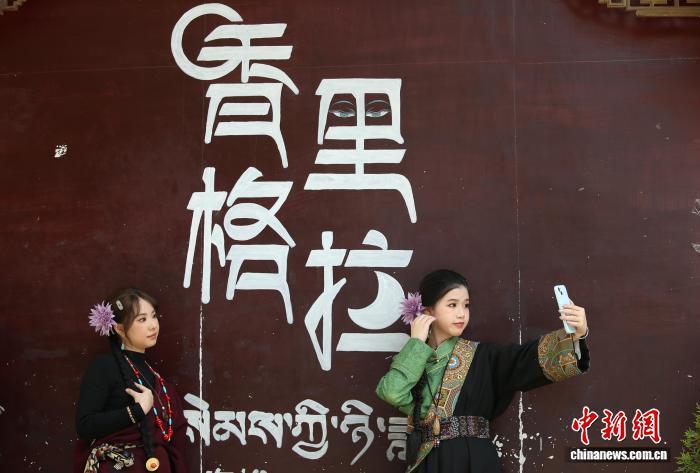 8月15日,兩名游客身著藏裝打卡獨克宗古城。中新社記者 黃興鴻 攝