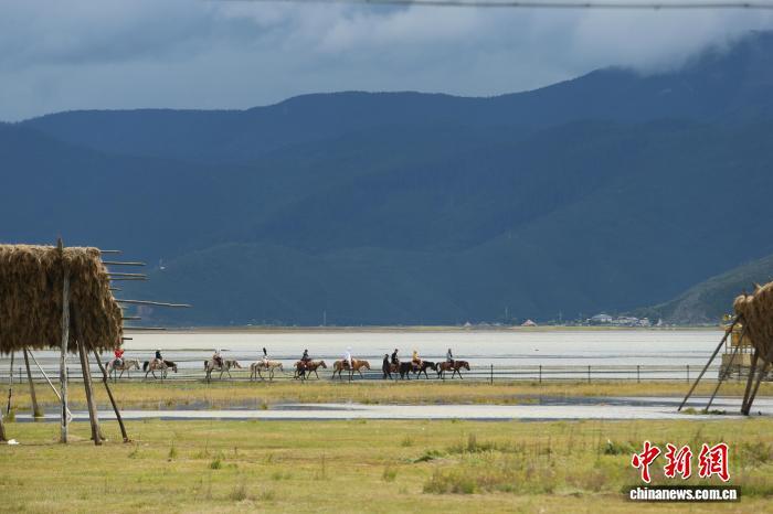 8月15日,游客騎馬游覽納帕海。中新社記者 黃興鴻 攝