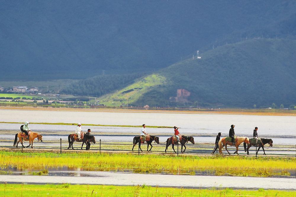 游客在納帕海景區(qū)騎馬游玩。黃興能 攝