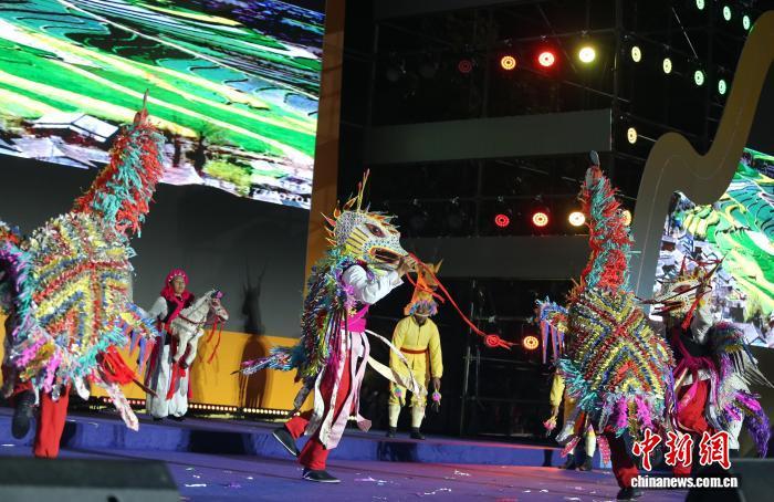 9月27日晚,迪慶州代表隊表演舞蹈《金雞馬鹿》。中新社記者 黃興鴻 攝