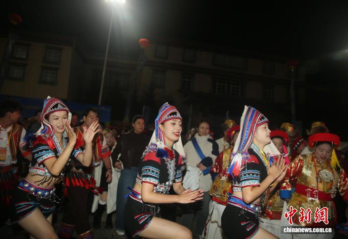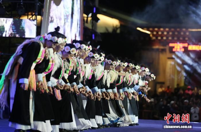 9月27日晚,麗江市代表隊表演舞蹈《幸福甲搓》。中新社記者 黃興鴻 攝