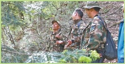 余建華(左一)在巡護(hù)。曾智慧 攝