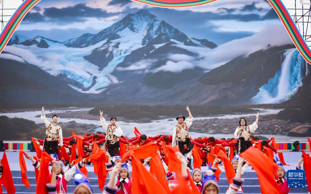 10月13日,當(dāng)?shù)厝罕娫趹c祝大會(huì)現(xiàn)場(chǎng)表演節(jié)目。新華社 李建生 攝