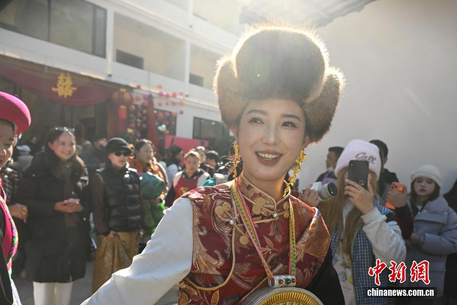 中國藏族網(wǎng)通訊 1月24日,在雪域高原云南省迪慶藏族自治州香格里拉市倉覺村,全網(wǎng)粉絲量超30萬的藏族姑娘扎史永宗和丈夫扎史培楚舉行了一場打破線上與線下、地域與時(shí)空、傳統(tǒng)與現(xiàn)代多重“次元壁”的婚禮?;槎Y上,新人穿著傳統(tǒng)藏式婚服,按習(xí)俗完成接親、祈福等儀式,親朋好友圍在一起跳鍋莊舞。同時(shí),現(xiàn)場擺放著現(xiàn)代風(fēng)格的婚紗照,用花藝等做裝飾,還通過5G網(wǎng)絡(luò)直播,讓沒能到場的網(wǎng)友也能身臨其境,傳統(tǒng)婚俗在現(xiàn)代表達(dá)中煥發(fā)新生。