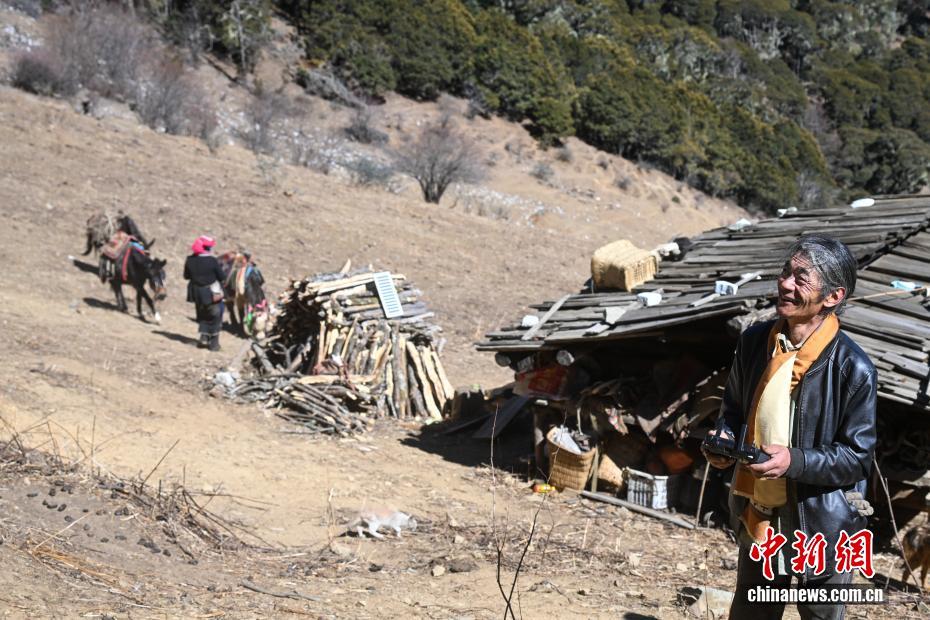 圖為1月27日,丹增培楚在牧場(chǎng)用無(wú)人機(jī)搜尋跑遠(yuǎn)的牦牛和騾馬。中新社記者 李嘉嫻 攝