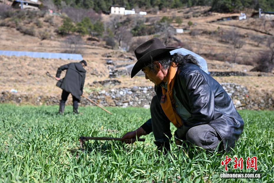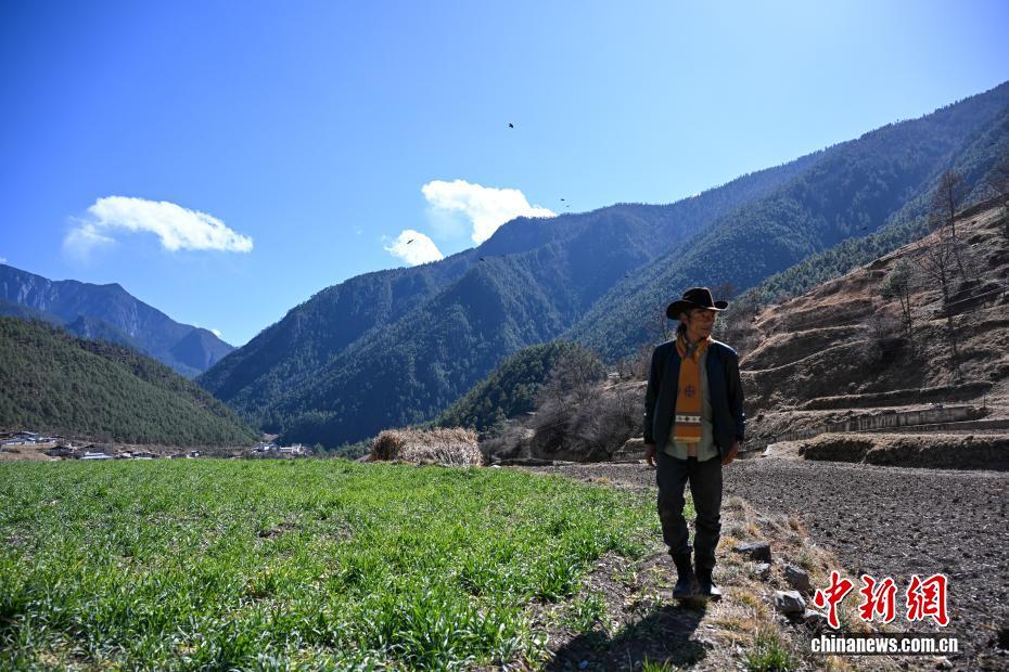 圖為1月26日,丹增培楚在尼汝村中打理田地。中新社記者 李嘉嫻 攝
