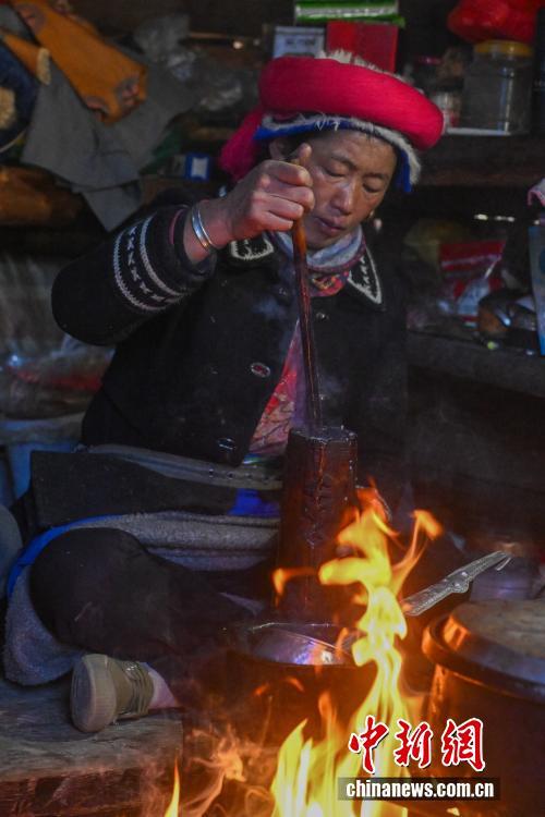 圖為1月27日,七林央宗正在制作酥油茶。中新社記者 李嘉嫻 攝