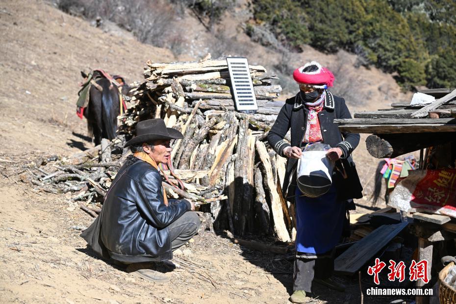 圖為1月27日,七林央宗(右)為剛到達(dá)牧場(chǎng)的丹增培楚準(zhǔn)備午飯。中新社記者 李嘉嫻 攝