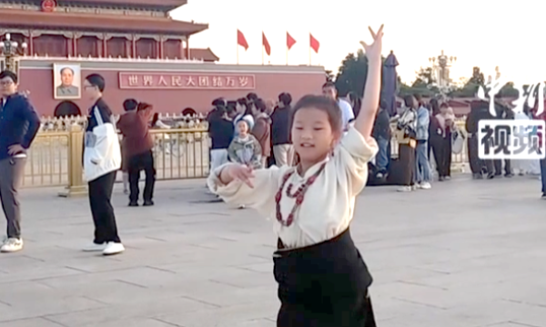 青海玉樹藏族小姑娘才文看卓在北京天安門廣場 長城起舞