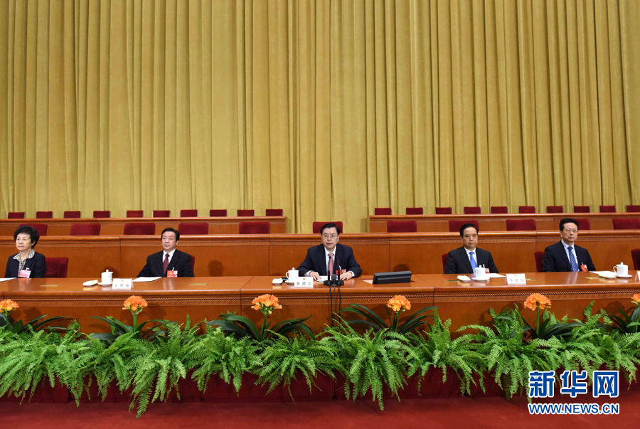 3月4日,十二屆全國人大四次會議在北京人民大會堂舉行預備會議。全國人大常委會委員長張德江主持會議。 新華社記者 饒愛民 攝