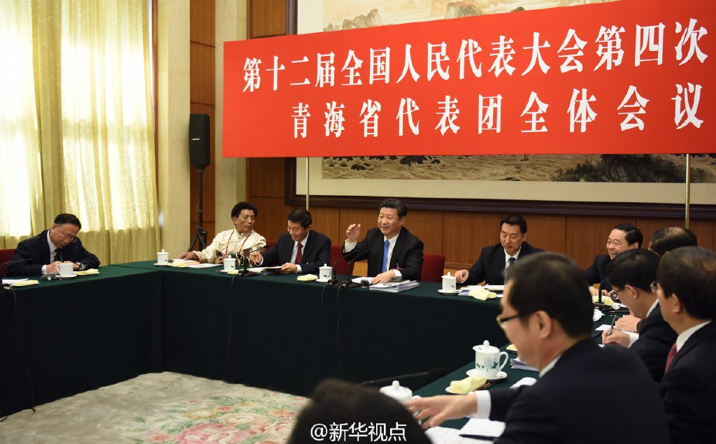 新華網(wǎng)北京3月10日電 3月10日上午,中共中央總書記、國(guó)家主席、中央軍委主席習(xí)近平來到十二屆全國(guó)人大四次會(huì)議青海代表團(tuán)參加審議。