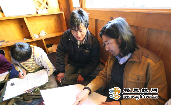 扎巴格丹向藏族學生傳授繪畫技藝。