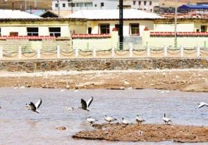 4月17日,記者拍攝的曲麻萊縣城內(nèi)一處人工湖上水鳥(niǎo)戲水的和諧畫面。 本報(bào)記者 張地委 攝... [詳情]