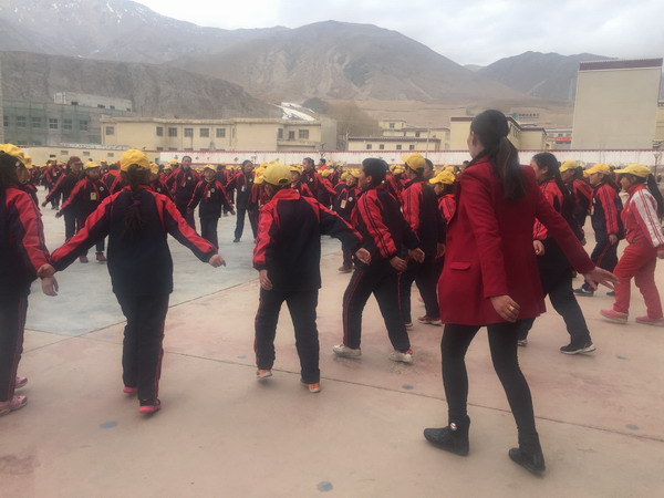 次旦卓嘎與學生一起跳課間鍋莊
