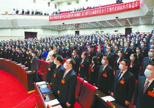 上午9時整,雄壯的國歌聲中,省十二屆人大六次會議隆重開幕。