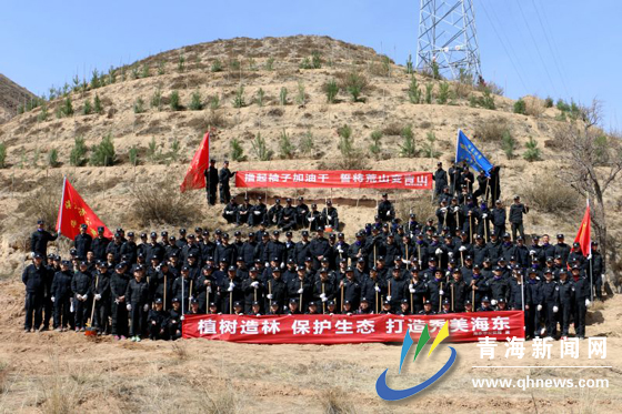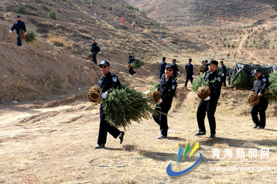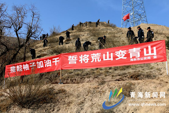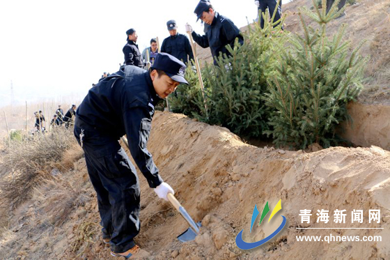 海東市公安民警開展植樹造林活動現(xiàn)場