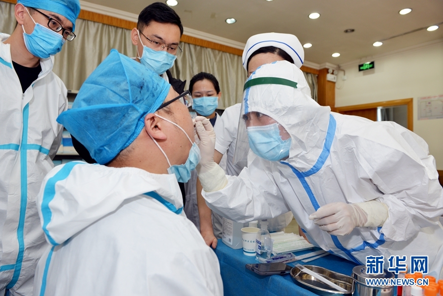 青海省人民醫(yī)院開展一對一交換體驗式核酸采集強化培訓。新華網(wǎng)發(fā)(何晨 攝)