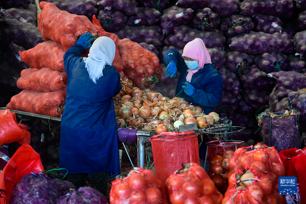 10月31日,商戶(hù)在西寧青藏高原農(nóng)副產(chǎn)品集散中心整理蔬菜。新華社記者 張龍 攝