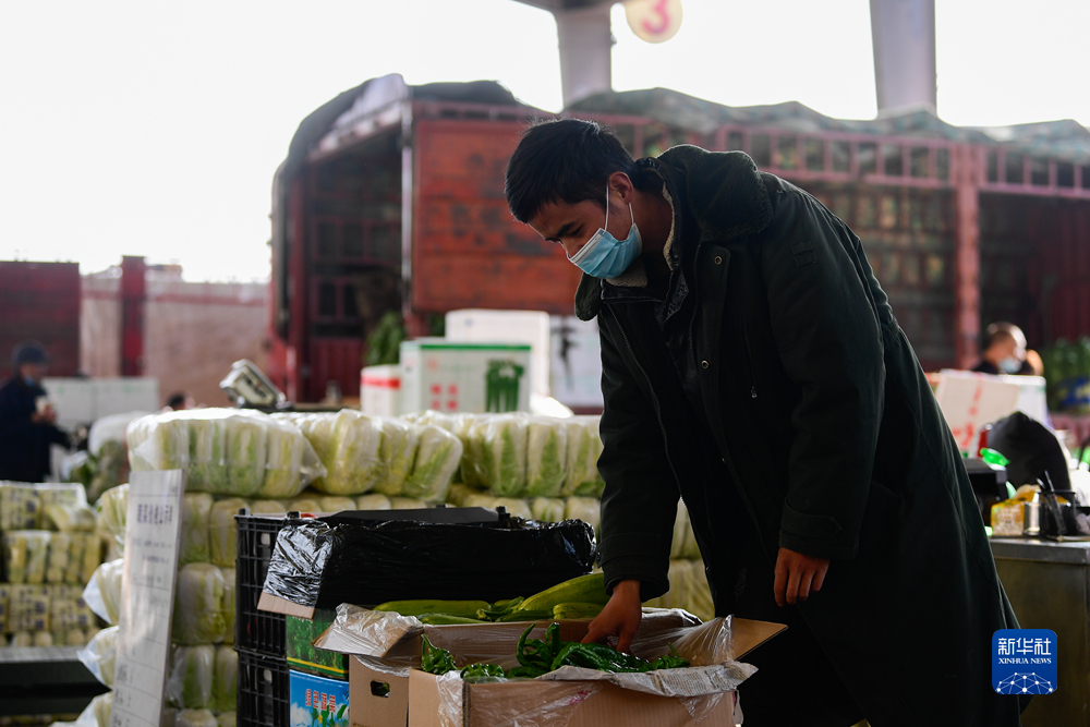 10月31日,商戶(hù)在西寧青藏高原農(nóng)副產(chǎn)品集散中心揀選蔬菜。新華社記者 張龍 攝