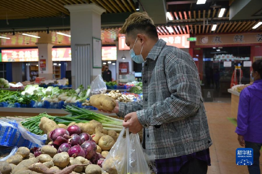 11月1日,西寧市民在鵬發(fā)智慧農(nóng)貿(mào)市場(chǎng)購(gòu)買土豆。(新華社記者 李寧 攝)