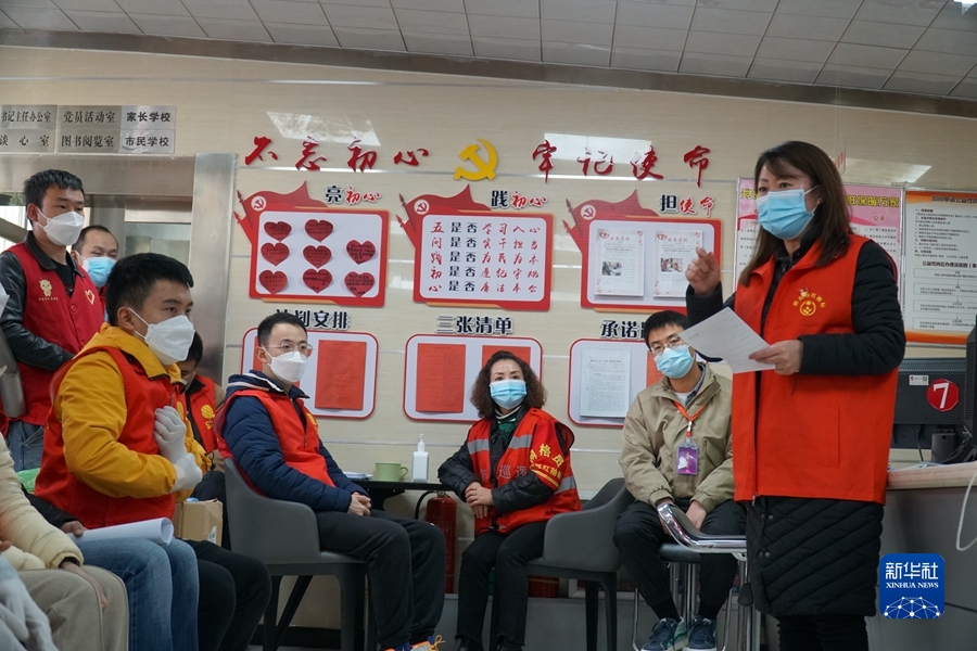 11月1日,青海省西寧市城西區(qū)勝利路街道西交通巷社區(qū)居委會(huì)主任陳瑞(右一)為志愿者安排工作。(新華社記者 張子琪 攝)