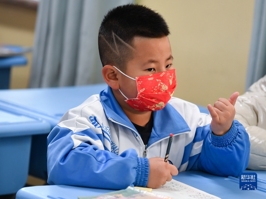11月15日,在西寧市城西區(qū)行知小學(xué),學(xué)生在上課。新華社記者 張龍 攝