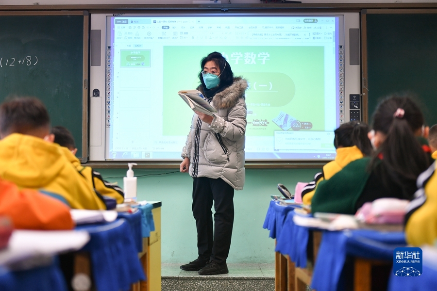 11月15日,西寧市城西區(qū)行知小學(xué)開始復(fù)課,一名老師在上課。新華社記者 張龍 攝