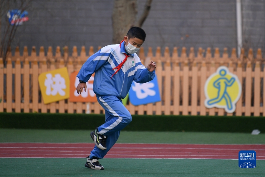 11月15日,在西寧市城西區(qū)勝利路小學(xué),學(xué)生在校園內(nèi)玩耍。新華社記者 張龍 攝